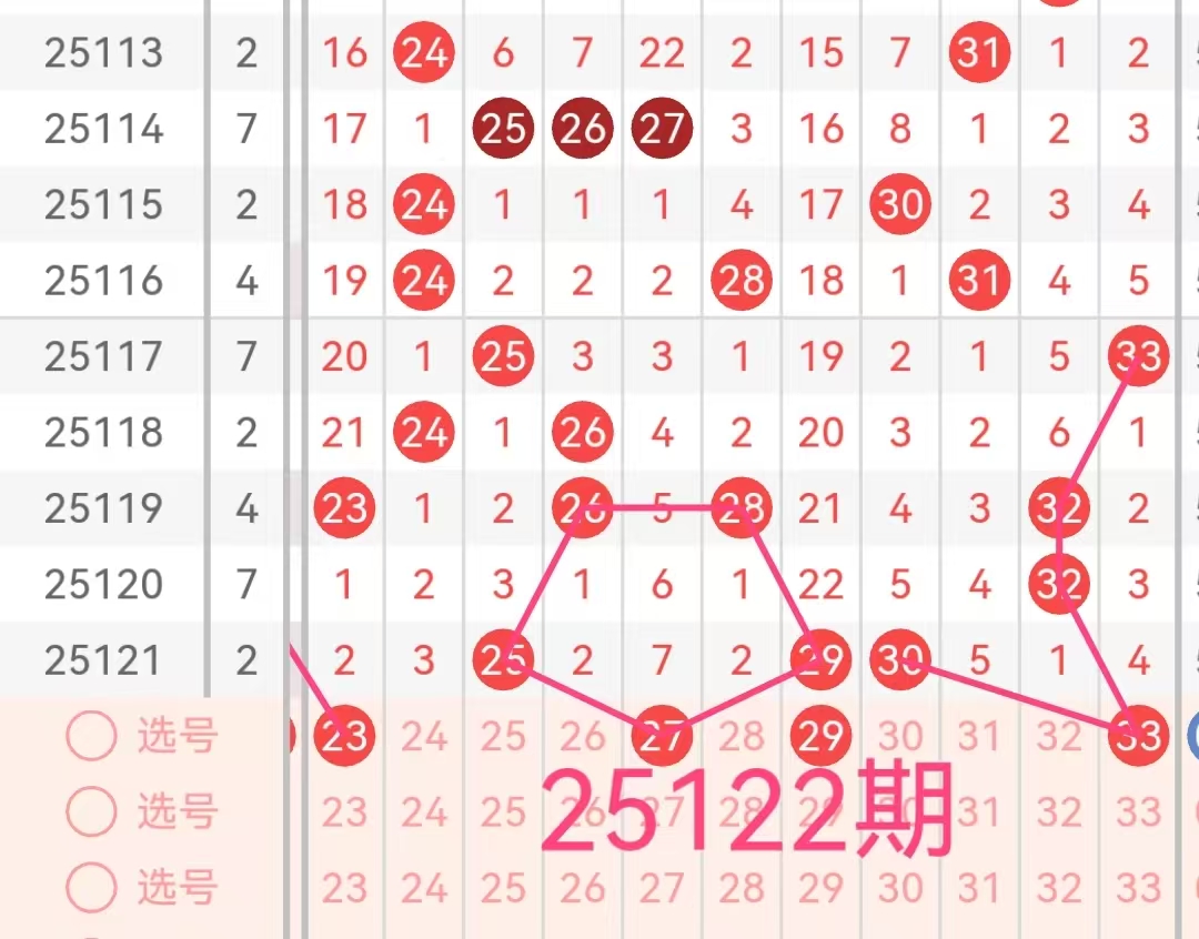 在前区区间分析中,猴博士将红球号码分为三个区间:1-11、12-22、23-33。以下是对每个区间的具体分析: