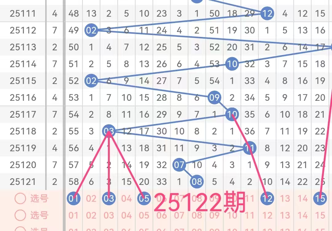 7.蓝球分析:上期蓝球开出08,本期重点关注蓝球号01、03、05、12、15