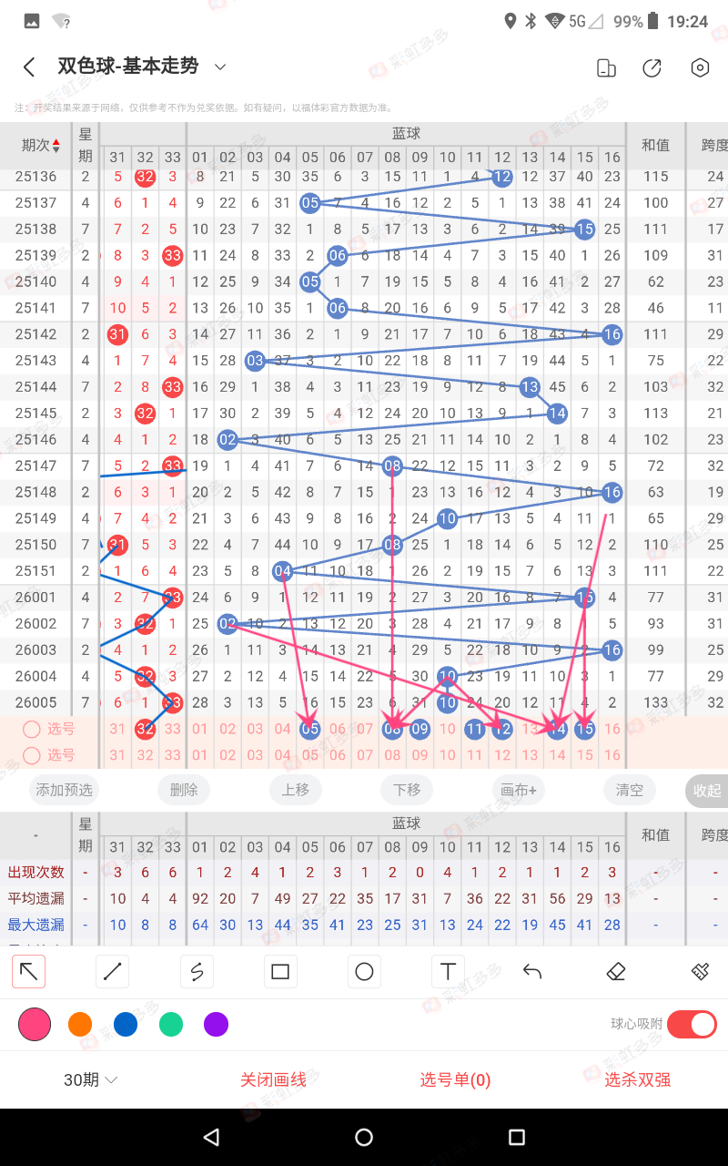 比如,005期蓝10号,004期蓝10号(属1路)那我们这期要杀的蓝号就是10+1=11大16,减16,11为本期杀号,008期错,039期-040期,060,074-075期100错,防三连错