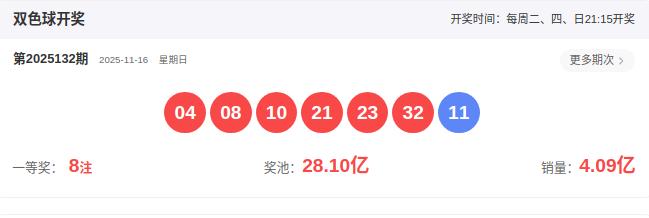 跨度为:28,大小比:3:3,奇偶比:2:4, 质合比:1:5,蓝球开出奇数质数大号码:11。