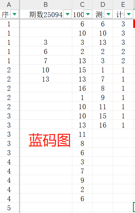 首先可以看一下蓝码的对比结果通过两个图表数据的对比,我们把蓝码的范围确定为3 6 7 10 13