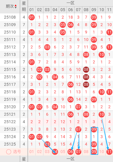 根据走势图可以看出当区段, 116期开出来02.04.08三个号码球,117期开出了06.08二个号码球,118期开出了01.10.11三个号码球,119期开出06.09二个号码球 ,120期开出01.02.04.07四个号码球 ,121期开出06.08.10三个号码球 ,122期开没有出号码球 ,123期开出07.09二个号码球 ,124期开出01.02二个号码球 ,125期开出03.09二个号码球 ,按照如此规律本期当前区判断可能会开出1单1双。我们看下当前区上期没有开出重叠号,那么本期当前区要定重叠号的情况下可关注09号码球。再看下当前区段上期开出03斜连号,当期选号得留意04斜连号。建议重点关注04.06.07.09.11