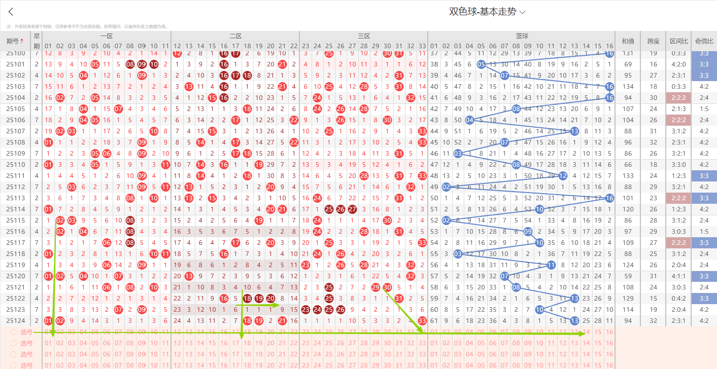 一、红球特征分析:(通过整体走势不难看出每期开奖号都具备以下明显的特征点)