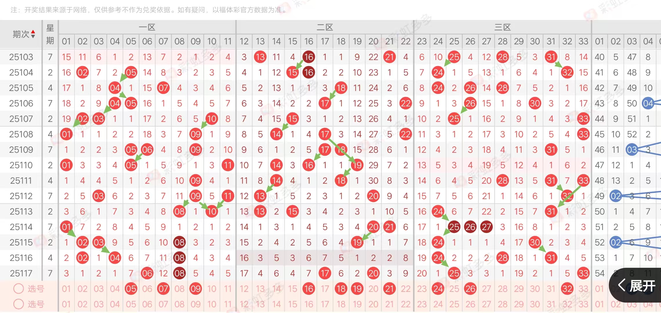(三区:一区1-11,二区12-22,三区23-33)上期三区比2:2:2