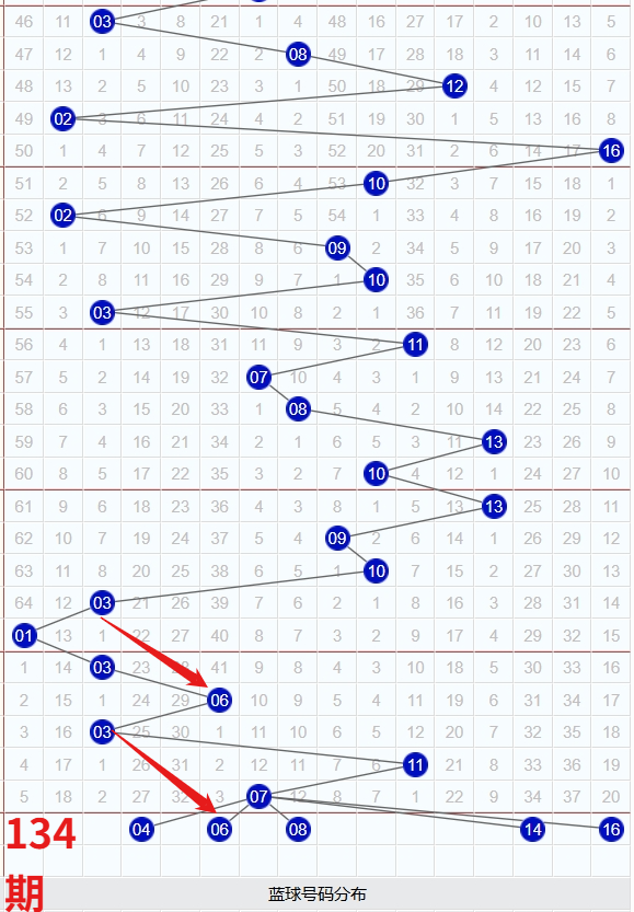 接下来看一下蓝球号码的分析!