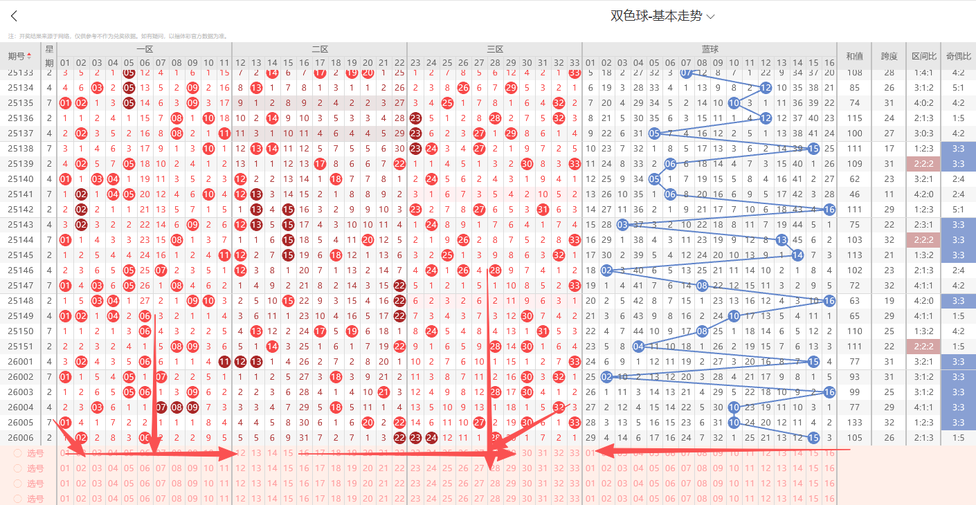 上期开奖号 码为:02 06 22 23 24 28 区间213 和值105 跨度26 奇偶比1:5