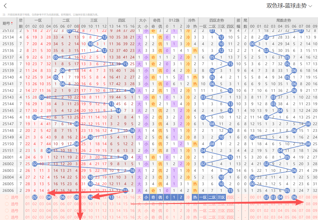 一、红球特征分析:(通过整体走势不难看出每期开奖号都具备以下明显的特征点)