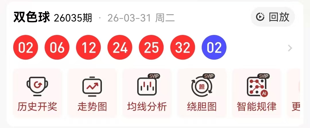 先来回顾一下第2026035期的双色球开奖结果:02 06 12 24 25 32+02,以下是对本期数据的详细分析: