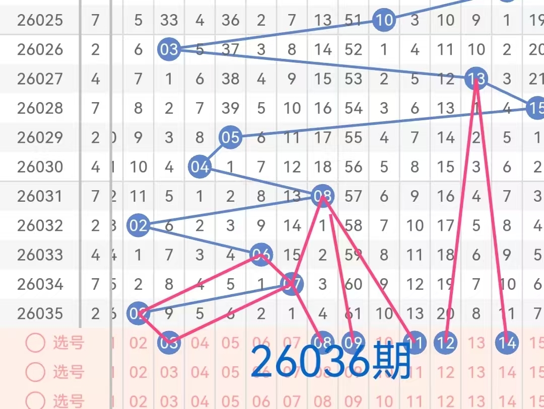 综上所述,本期后区可关注的号码有03 08 09 11 12 14