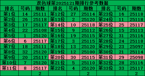 以双色球自开奖以来每个号码出现的次数排位,可分为冷热温三区: