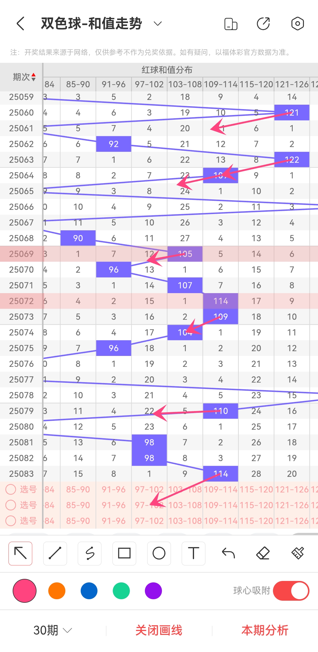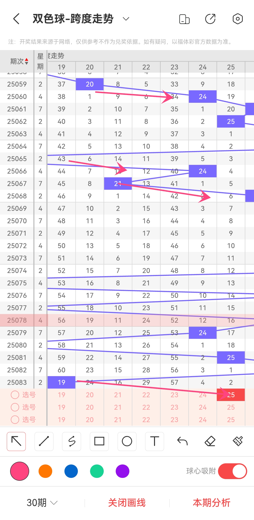 上期龙头为10,凤尾为29,跨度为19,跨度值算是比较小的了。综合走势图和历史数据。那么目前趋势就比较大可能是往右上升了。