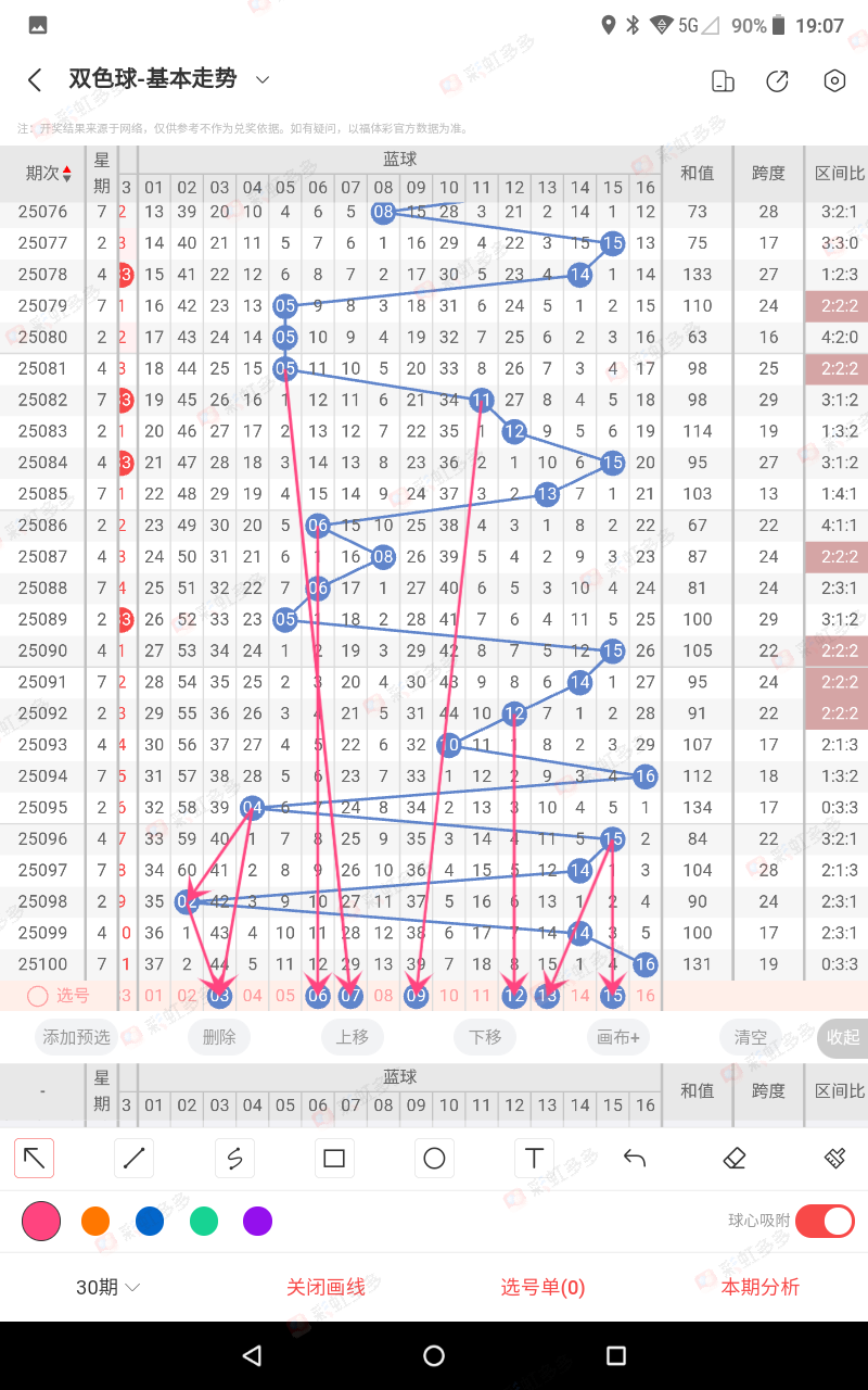 090期,近三蓝,08+06+05=19,1路红,15,对