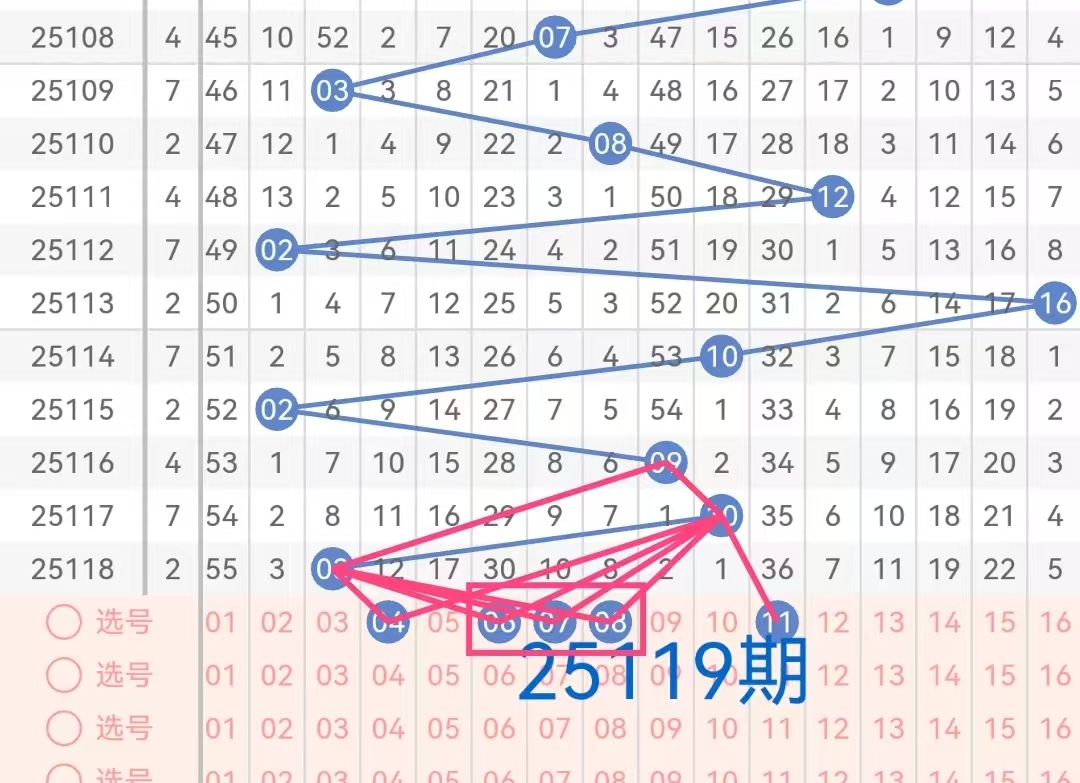 综上所述,本期后区可关注的号码有:04 06 07 08 11 13