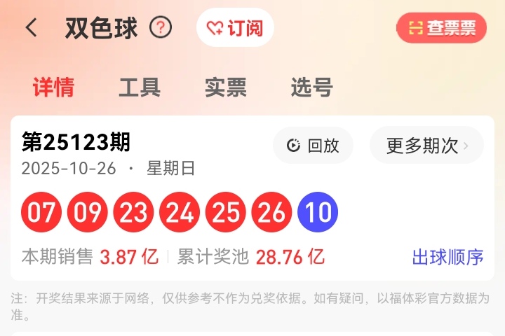 123期红球命中07、23、26三码