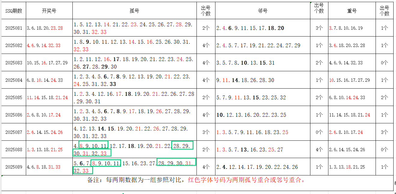 如图,以近两期数据为一组,进行对比分析。相同的孤号、邻号,可能在下期出1-4个左右。上期孤号开出4个,邻号开出1个,重号1个。本期参考孤号:1.2.10.11.12.13.14.15.16.20.21.22.23.24.25.26.27.28.29;邻号:3.5.7.9.17.19.30.32。孤、邻号重合号码精选:***(会员专区可见)。个人分析,仅供参考。