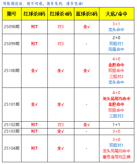 茯苓子双色球25107期:综合分析+杀号推荐!上期红球杀8码对6