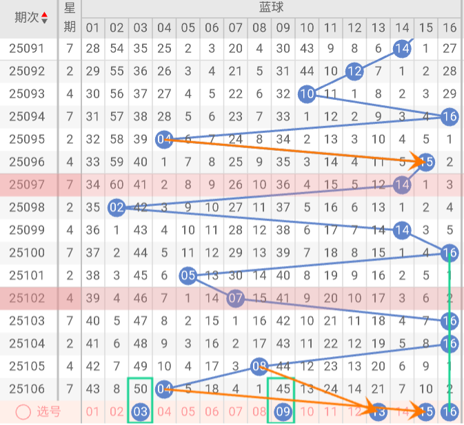 蓝球:03、09、13、15、16