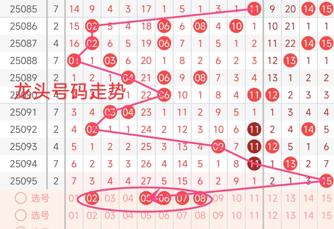 上期龙头号码为15,振幅上升了4点,开出奇数号码。从近期龙头号码走势来看,上期龙头为15,红一区断区,处于红二区。近期龙头号码开出号码较大,本期龙头有望前移,关注01 - 08区间的号码。 本期还需关注遗漏值较高的号码,本期有望龙头号码热出的区域。综合考虑,本期龙头号码可重点关注02、05、06、07、08。