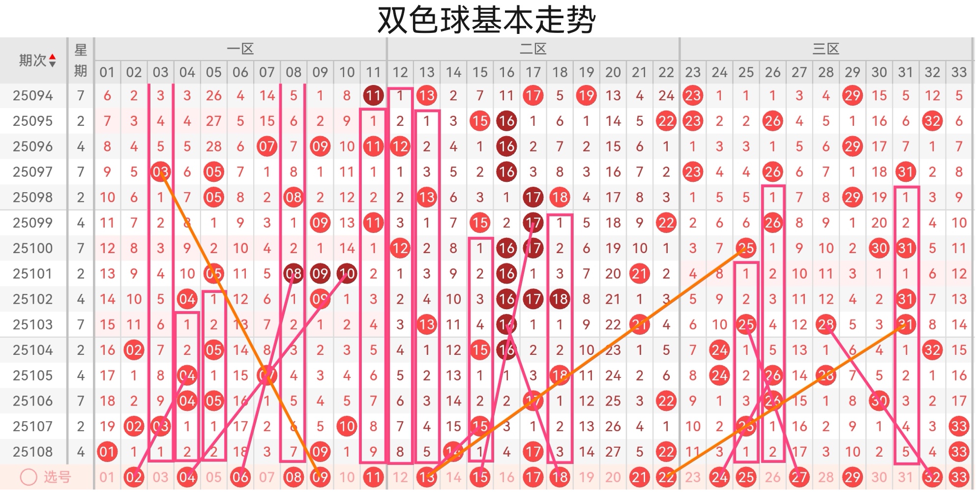 双色球25109基本走势分析如下