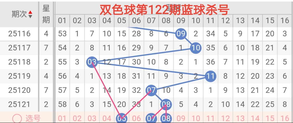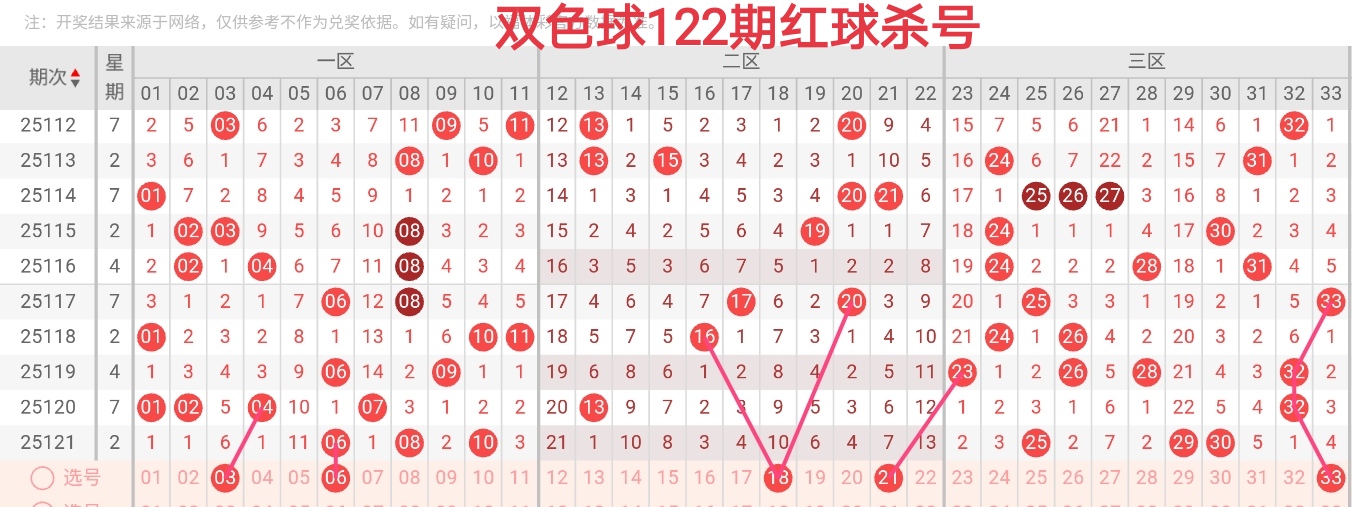 25122期双色球趋势杀号(直播间可看选号条件+围红蓝+杀蓝):