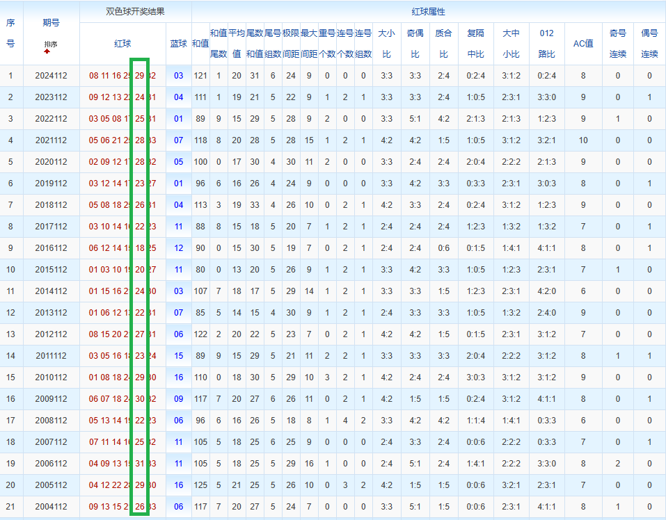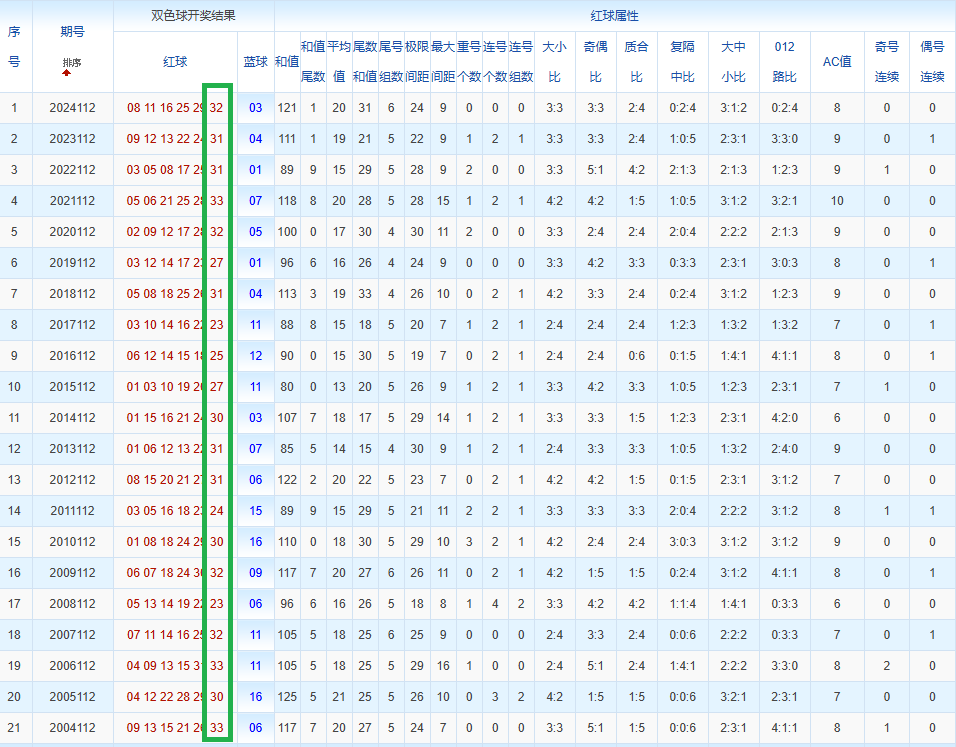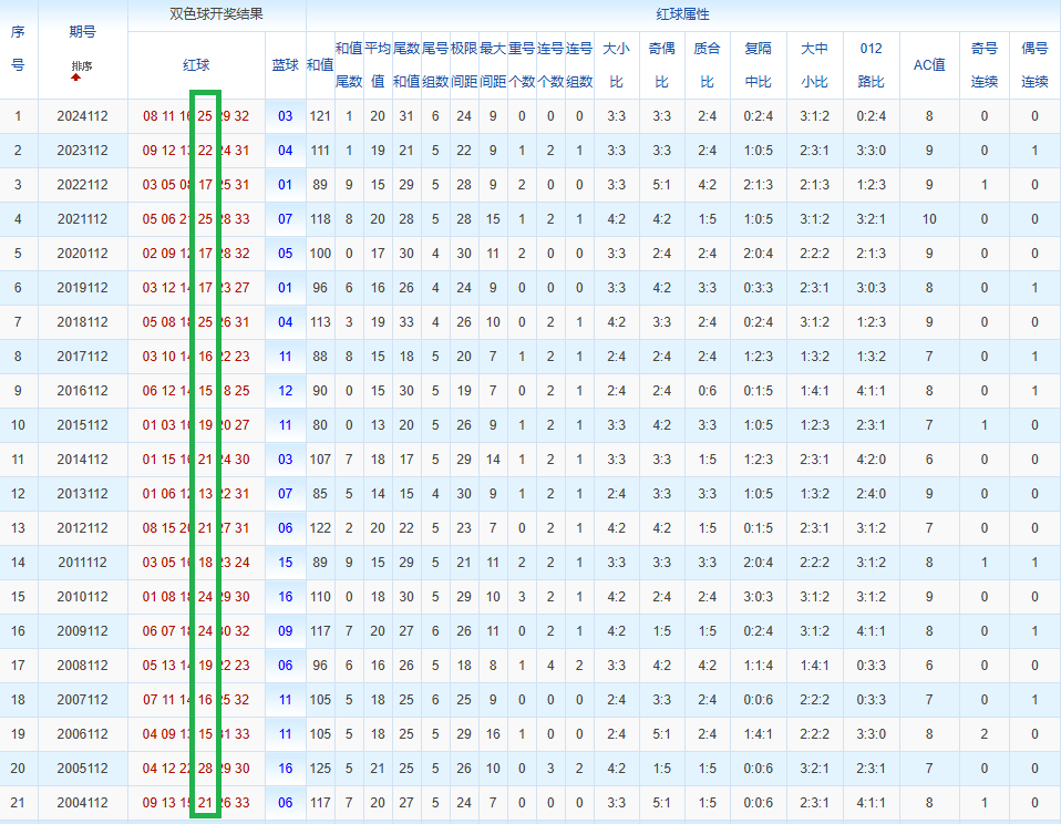 往年同期中选取出现次数靠前的数作为我们的分析对象,其数据有:31 25 12 等