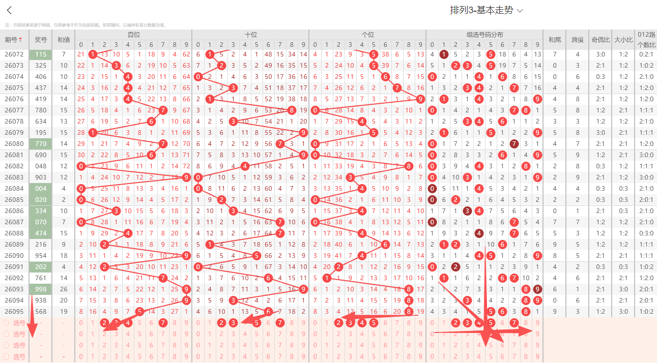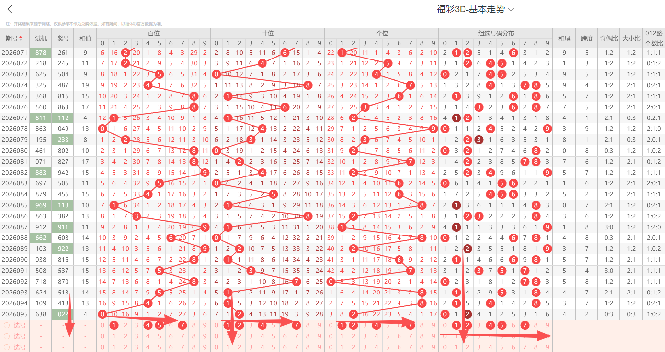①百位:上期开出大号奇数5号,在历史开奖记录中显示一般正常的奇偶周期平均在1~3期为普遍现象,奇数连续开出4期上期为2路号码,依据奇偶以及012路周期性规律的转变特征点即本期2路号码有开出的趋势0路号码注意预防。