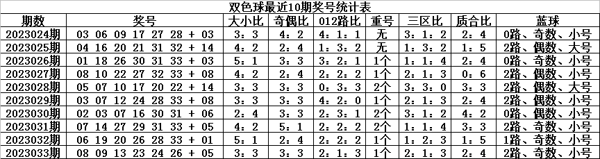 上期奇偶比为3:3,奇偶红球走势相当,近10期奇偶比为30:30,奇偶红球持平,其中奇数红球热出2期,平衡5期,走冷3期,本期预计偶数逐渐热出,看好奇偶比为2:4。