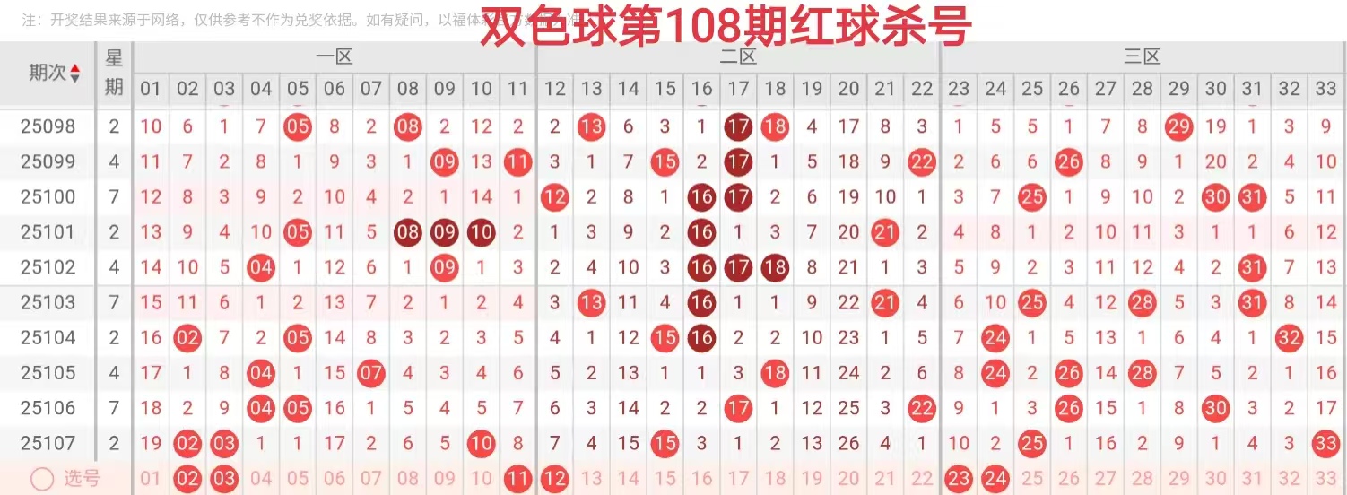 25108期双色球趋势杀号(直播间可看20码围号):