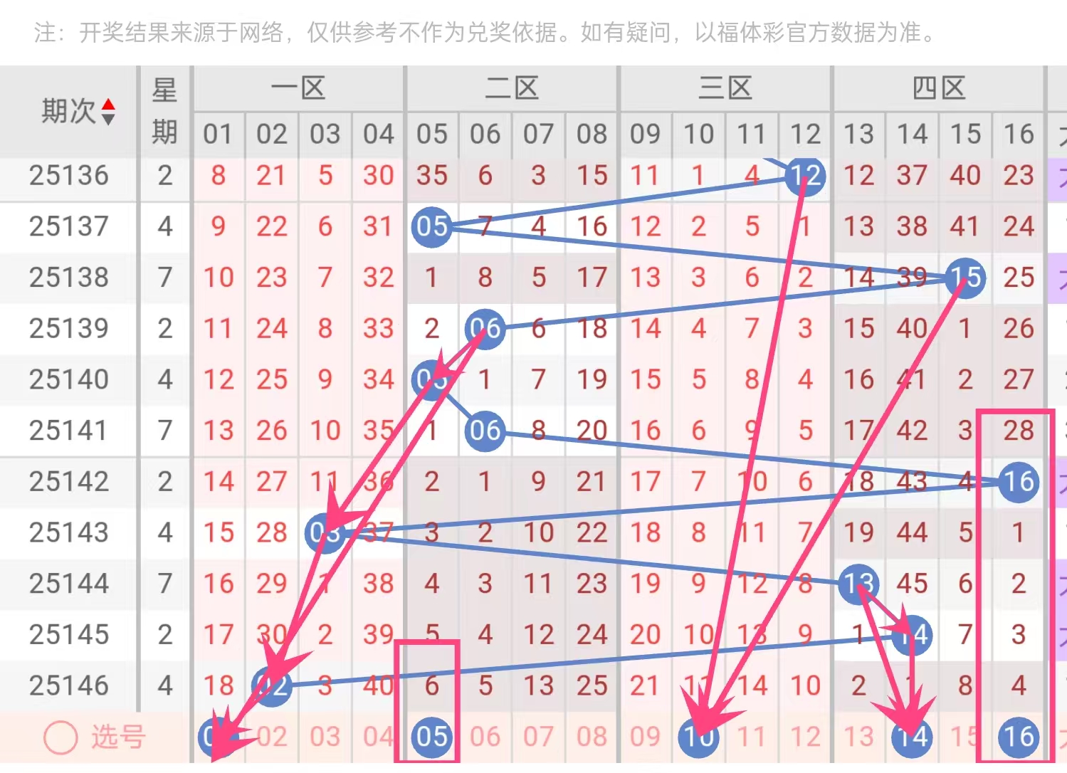 5个蓝球:01、05、10、14、16