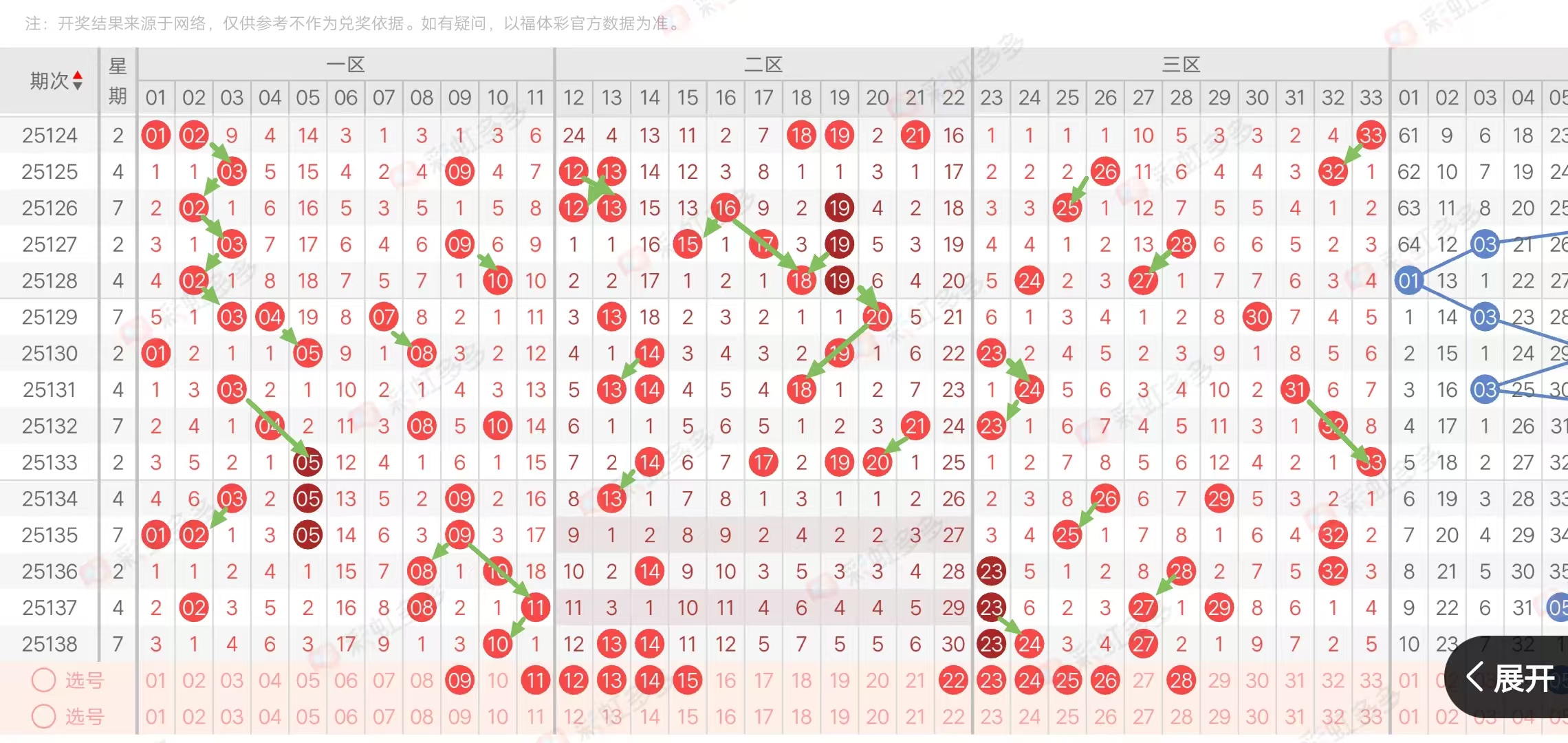 (三区:一区1-11,二区12-22,三区23-33)上期三区比1:2:3