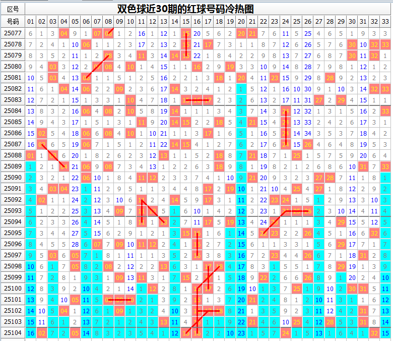 以下是双色球最近10期(25095-25104期)的推荐情况,更多期数的请参考往期文章: