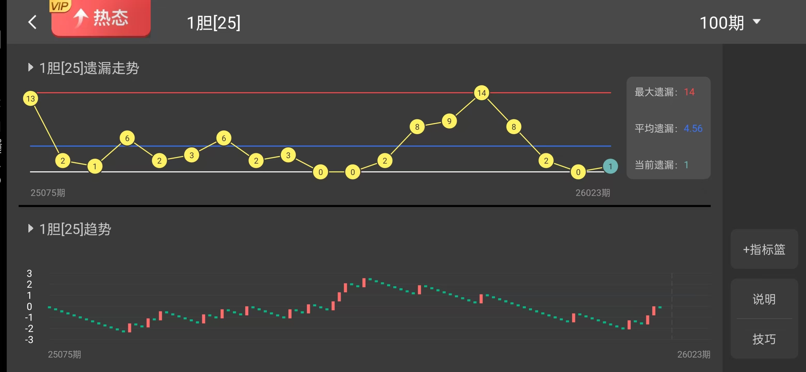 杀23:上期重号,近6期出现两次,属第三区间,该区间近期虽热,但重号往往难以延续。