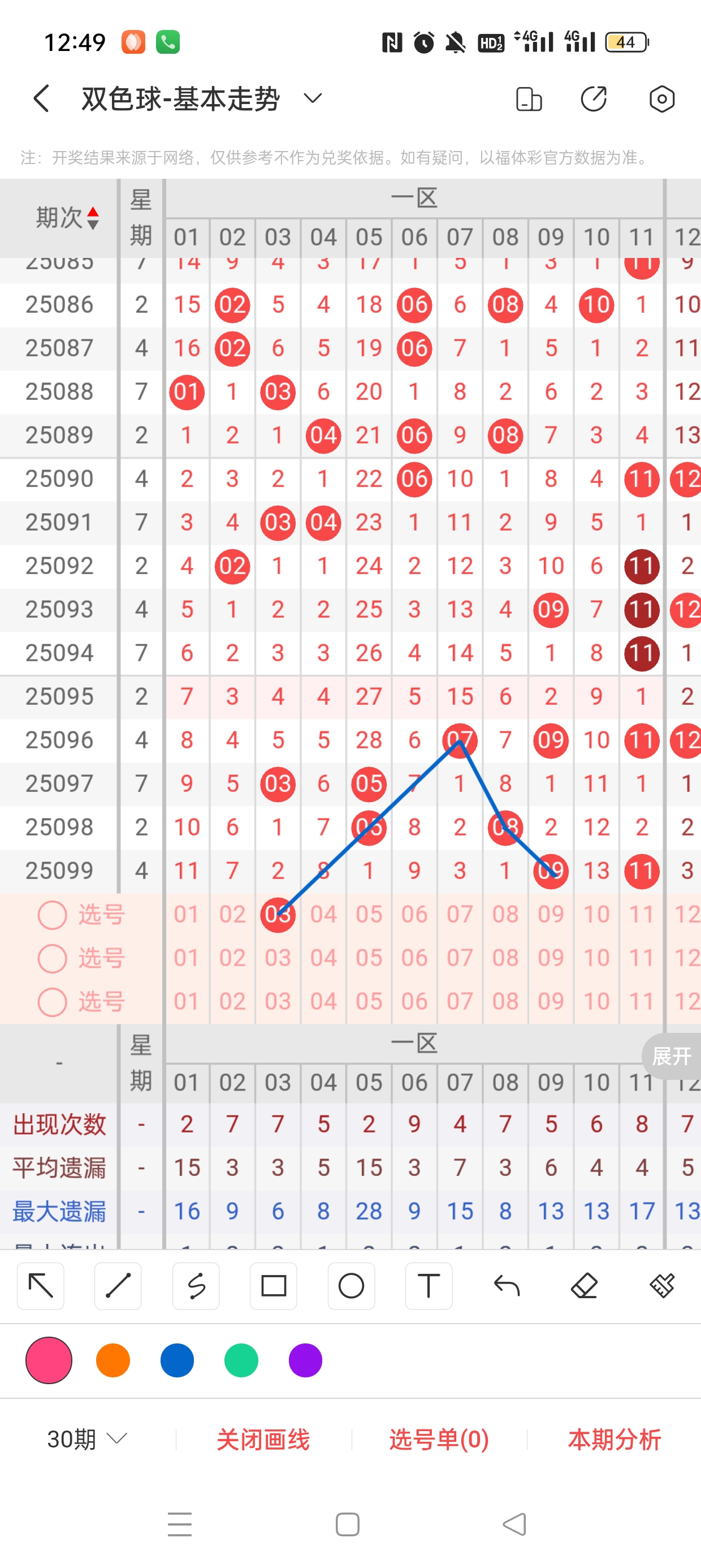 双色球分析技巧解释: