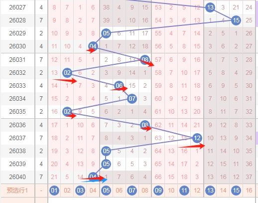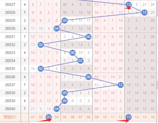 上图是福彩双色球蓝球开奖号码走势分布图,我标注出来的红色箭头表示最近开出的蓝球号码偶数数字,很明显偶数蓝球数字多,上期又开出了偶数蓝球数字04,那么本期开出奇数蓝球的机会有,关注奇数数字蓝球号码。
