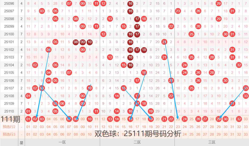 先介绍下上期开奖号码的基本情况,红球奇偶比:4:2,区间比:3:3:0,012路比:0:3:3,通过上期号码简单介绍,分享下25111期号码球个人认为的出号可能,供大家参考!