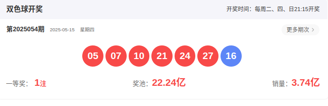 2025054期开奖号码: