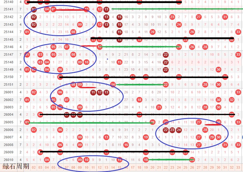 如图所示:体现的是3个局部走势的发展周期,圆圈为密集处的填空,本期定性为新局部走势3期修饰真实目的空间,主力填空第1期。定性蛋跨8-18预估2枚,19-26空间右推。