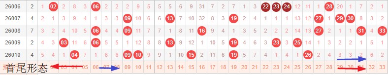 如图所示:首尾制约平衡组范围依次为:缩推拉,推推? 本期形态范围优先选择红色拉伸首尾。由于上期号码已经进入新走势第2期,目前处在新走势第3期,利用常规起号形成拉伸还是右推就是走势正反方向。