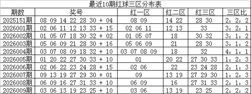 关键词六:红球三区分布: