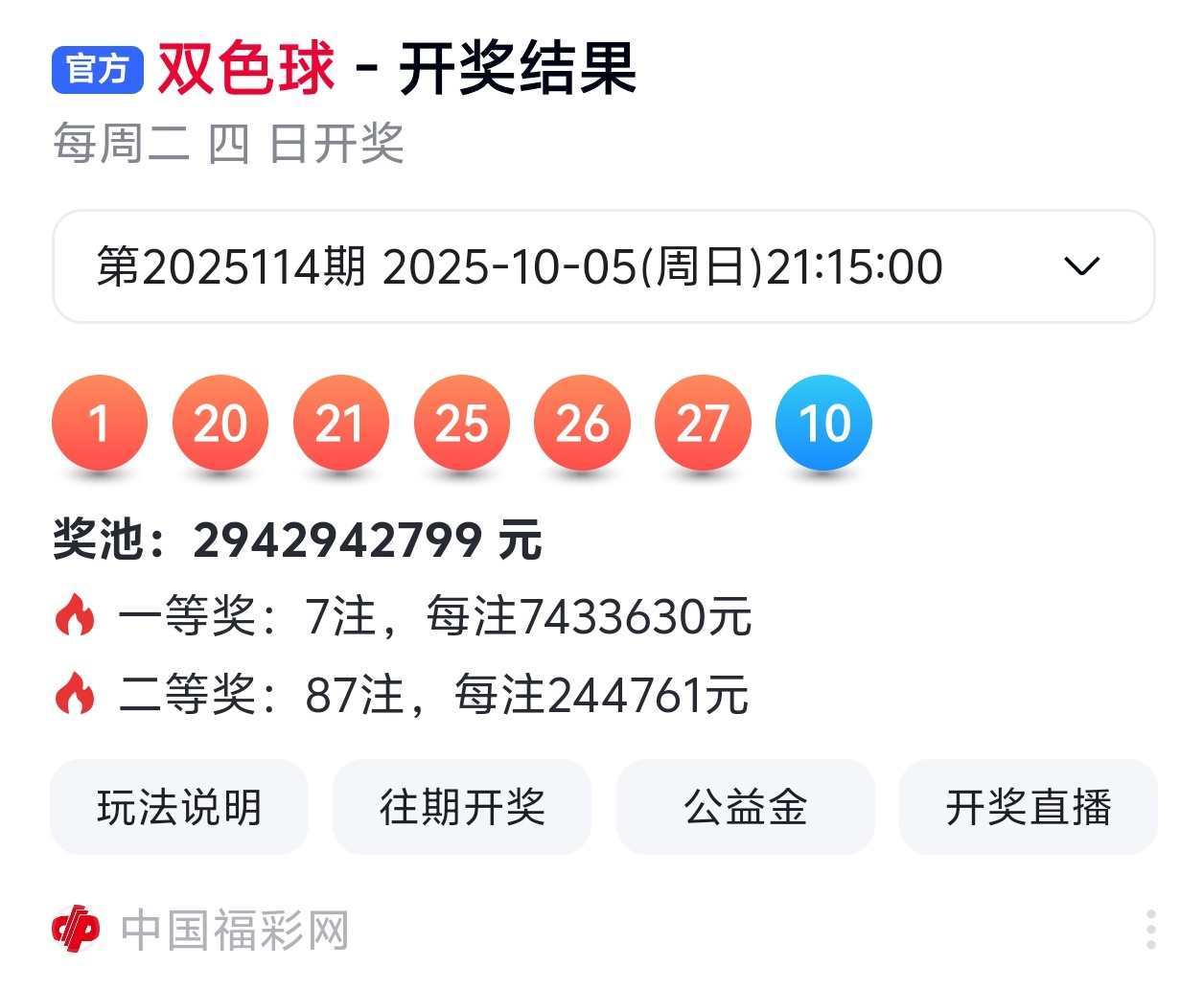 下面是我对2025115期福彩双色球的分析和预判,希望通过我的分析能让大家今晚大红!福彩双色球上期开奖号码如下图: