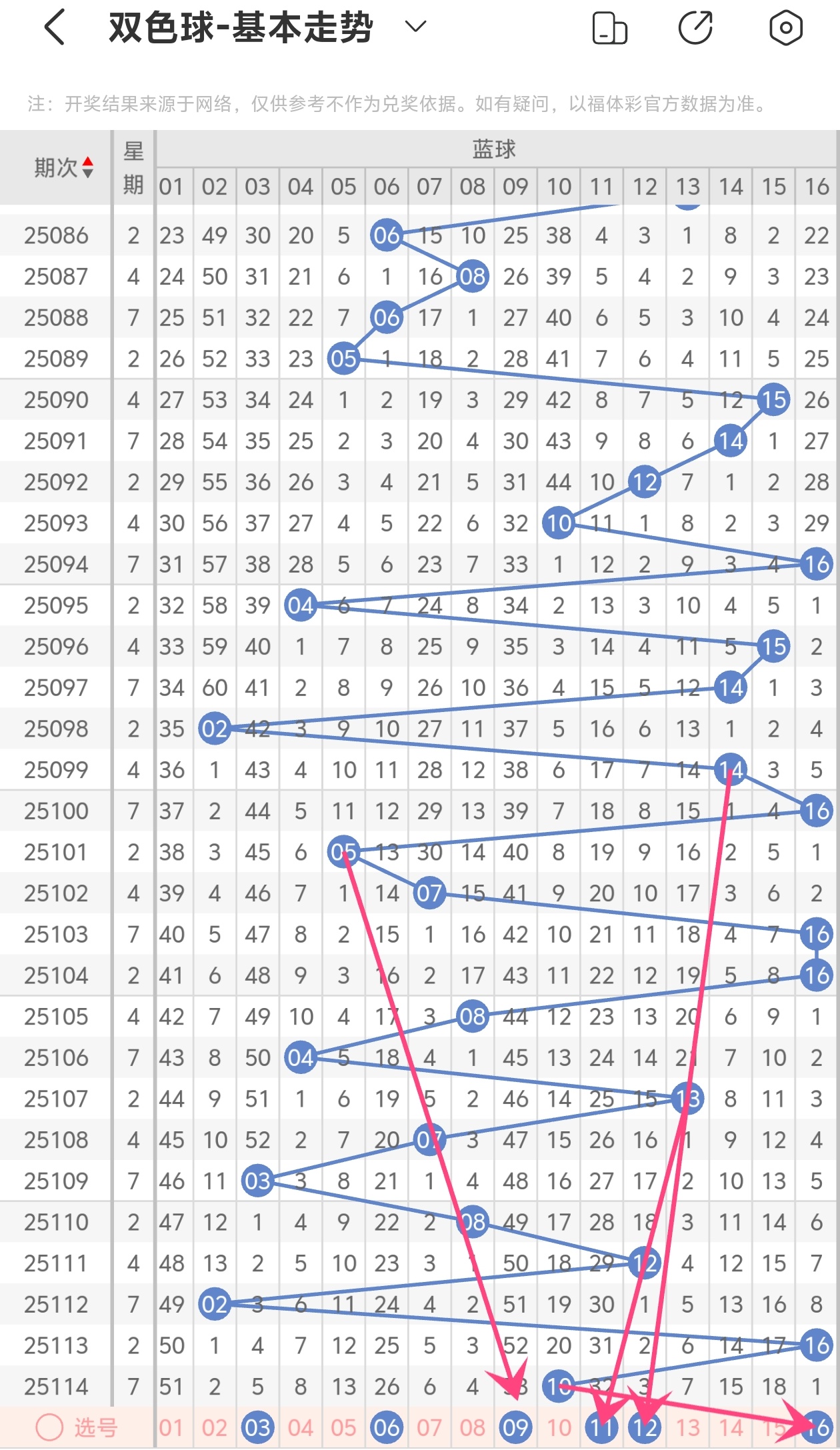 下面双色球的蓝球走势图分析: