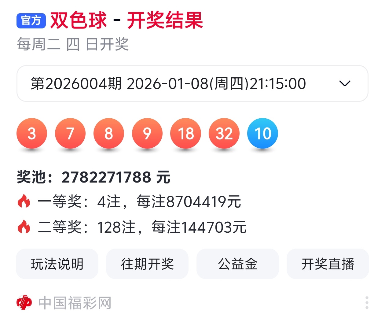 下面是我对2026005期福彩双色球的分析和预判,希望通过我的分析能让大家今晚大红!福彩双色球上期开奖号码如下图: