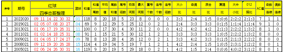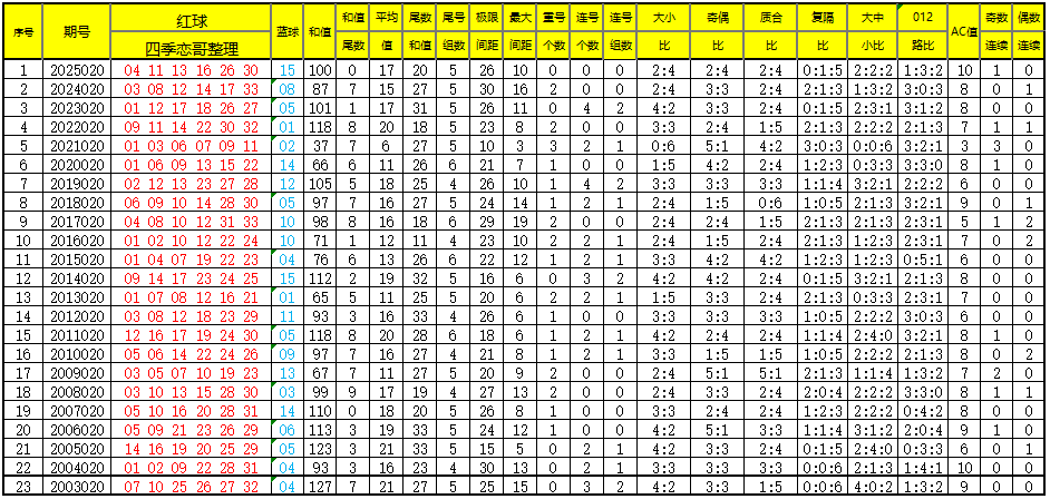 附:2003年起每年020期开奖号各类数据及同期开奖号各类数据,供大家参考!大佬和彩友们速速拿走~