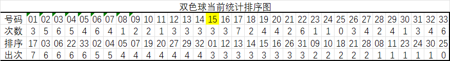红球15码大底统计顺序:17,03,06,22,33,05,07,19,20,27,29,32,01,12,13