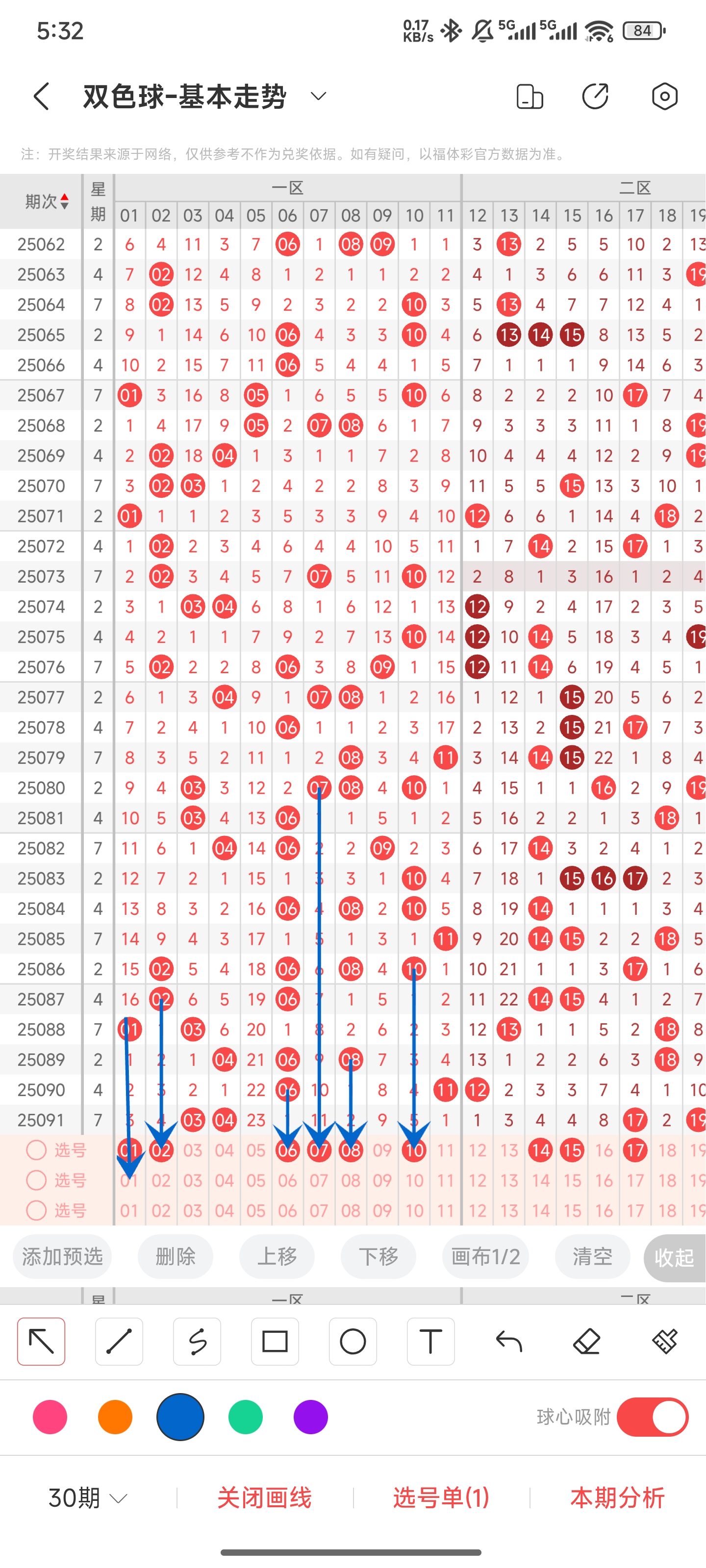 25084期双色球文章中15+5推荐中命中06081014335个红球,命中蓝球15