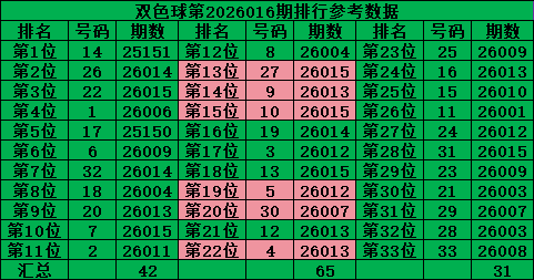 红球三区比:4:0:2(一区01-11号,二区12-22号,三区23-33号)