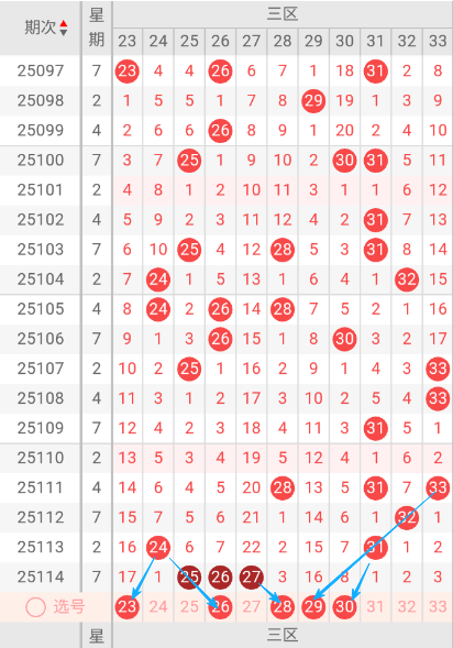双色球三区(23-33)