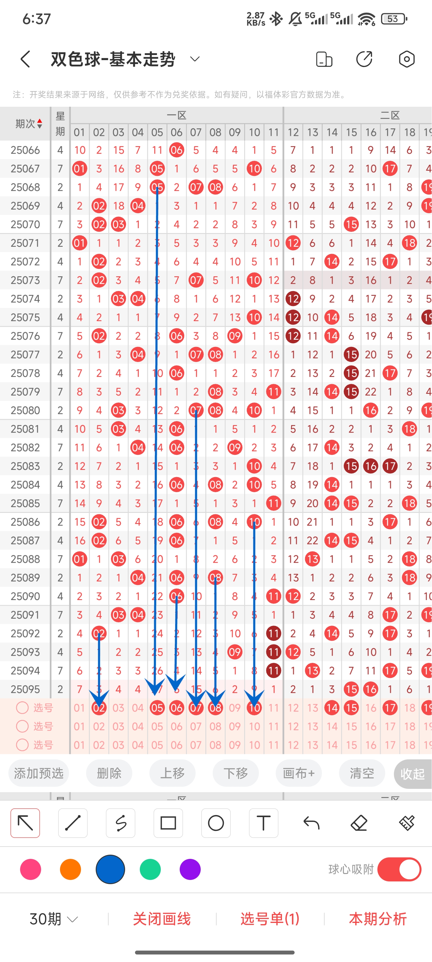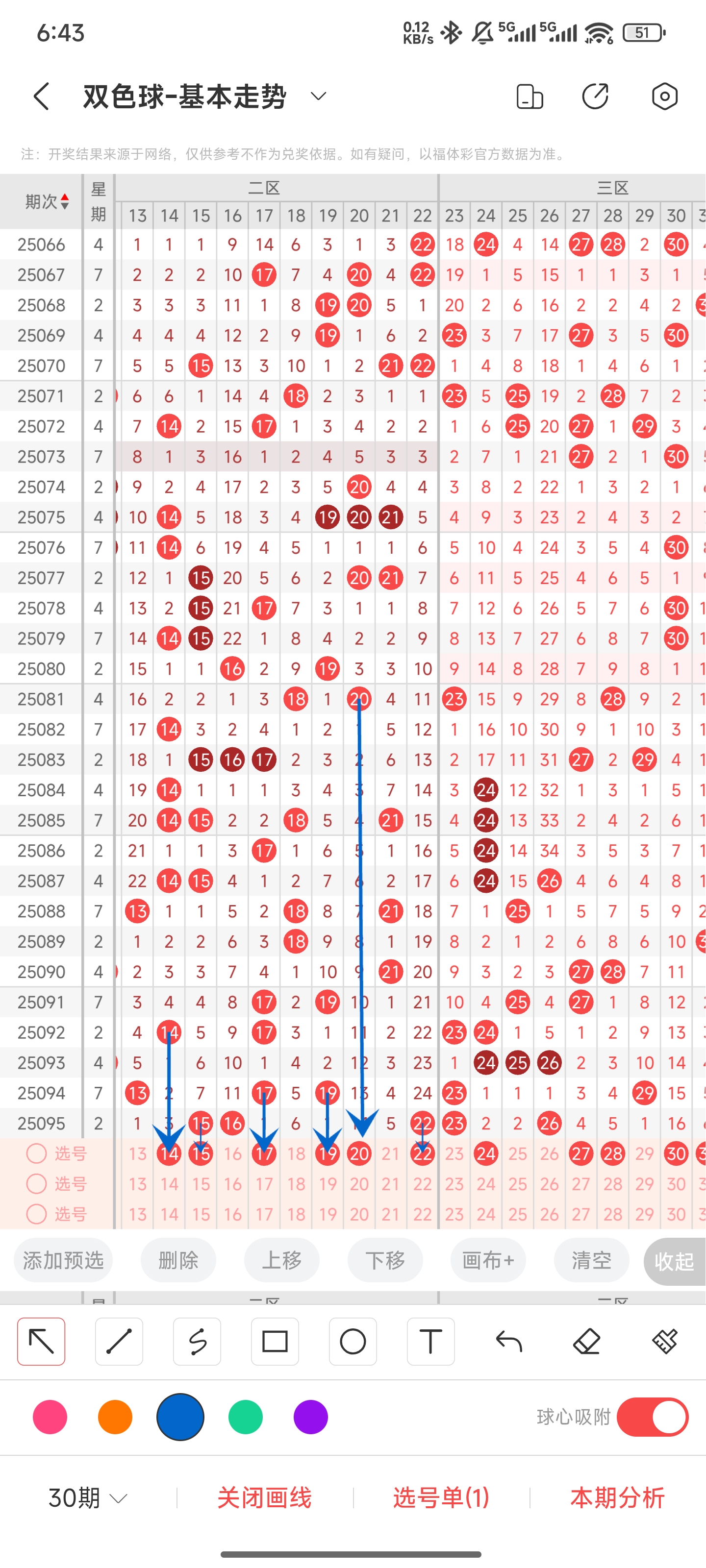 上一期二区开出为151622。往前一期开出了131719152230期内都有过连出的记录,15是二区内比较热门的号码,22则是冷号,但有可能爆冷连出的可能性,所以本期我们可以考虑一下连出。通过分析二区的走势图,最近两期开出的号码比较多,推测本期应该会有所减少。所以本期我们可以关注一下比较热门的号码,以及遗漏得得比较久的号码,有14171920等号。综上所述推测本期可能开141517192022等号码。