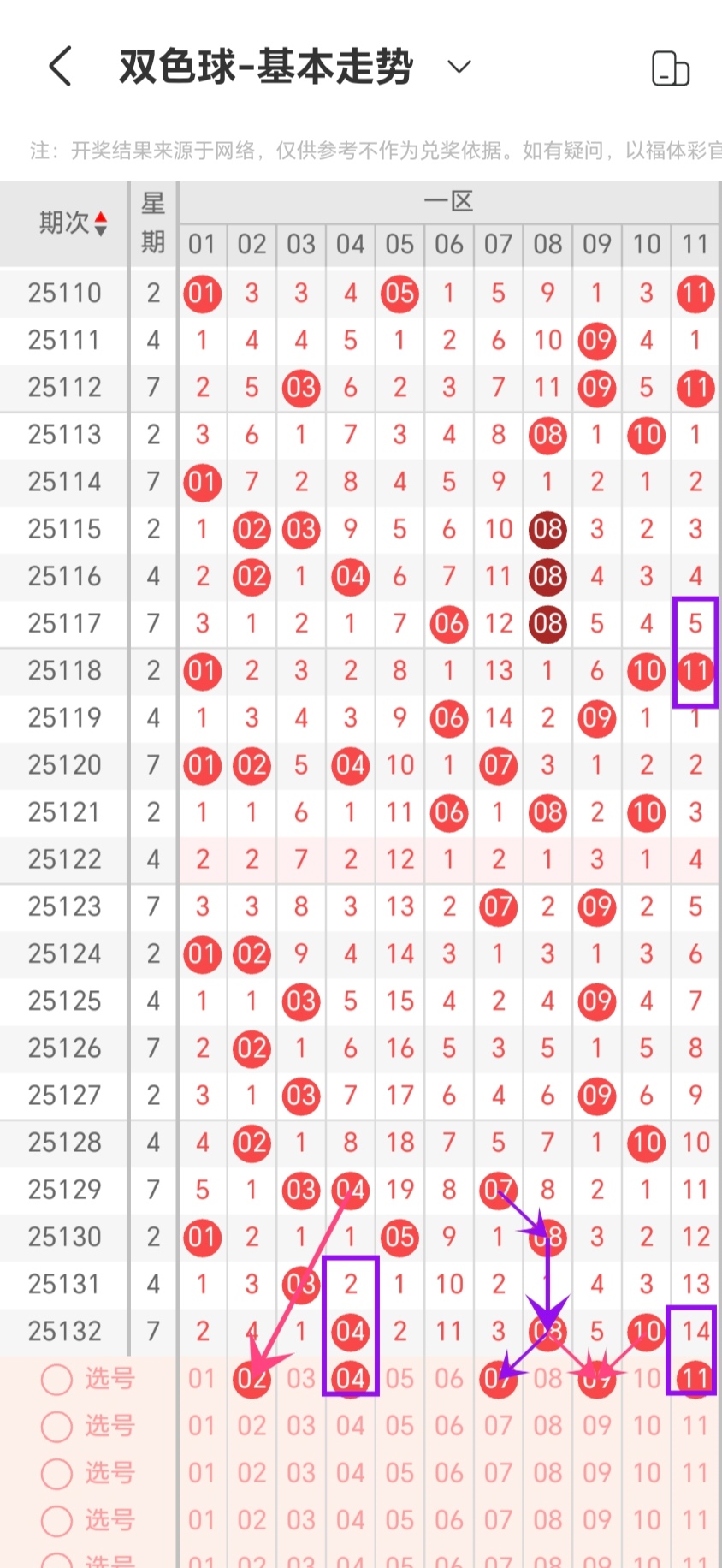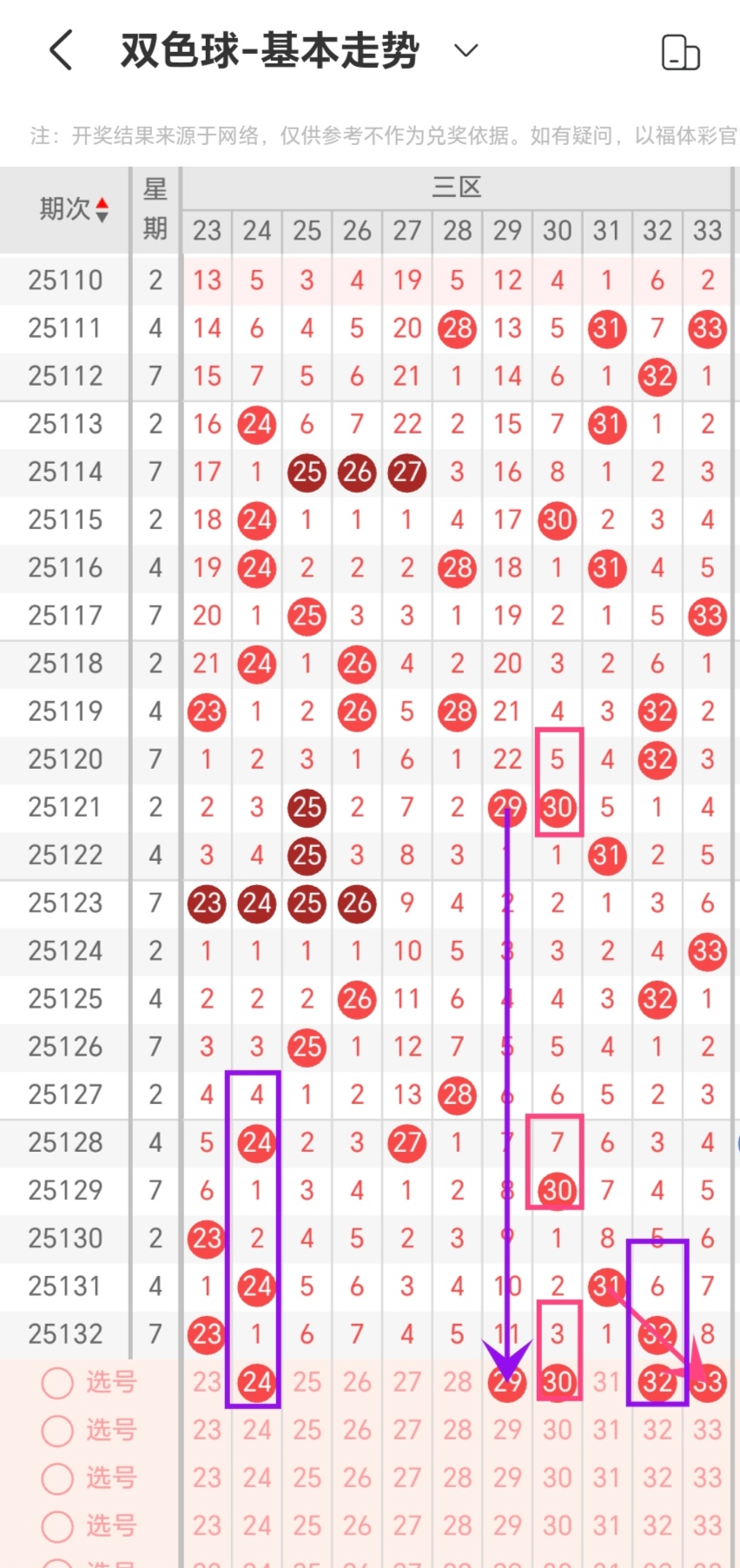 免费文章:奈斯做数据133期双色球分析(近6期红5期,上期三胆对一,两码蓝命中)
