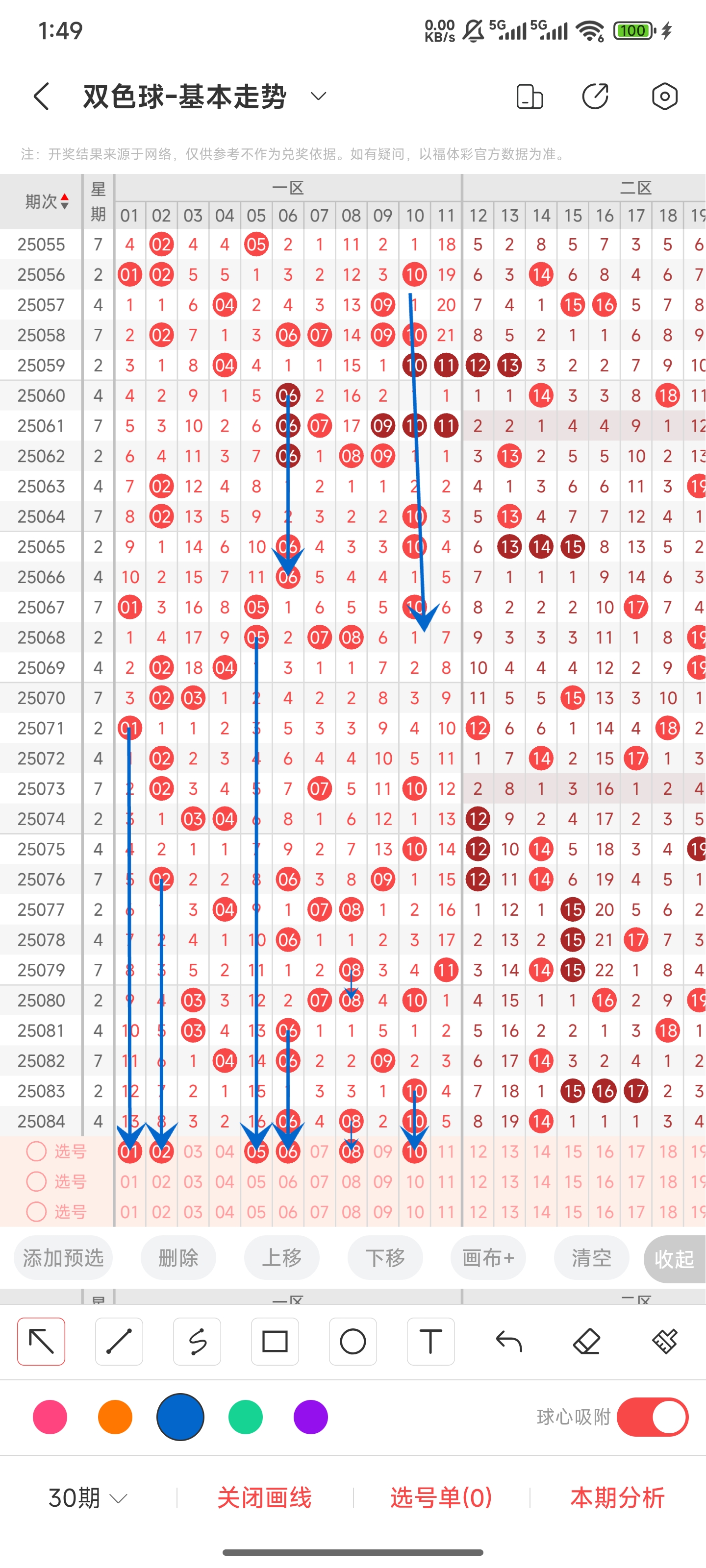上期开出的是15,往前一期开出的是12。通过分析走势图,目前趋势应该大概率是往左的,走势也应该不会太陡,除此之外最近开出的号码都是一些比较冷的号码。所以目前趋势可能是冷号回归。所以我们可以关注一下比较冷门的号码,例如06,07,10,11,12所以本期推测可能开出06,07,10,11,12等号码。